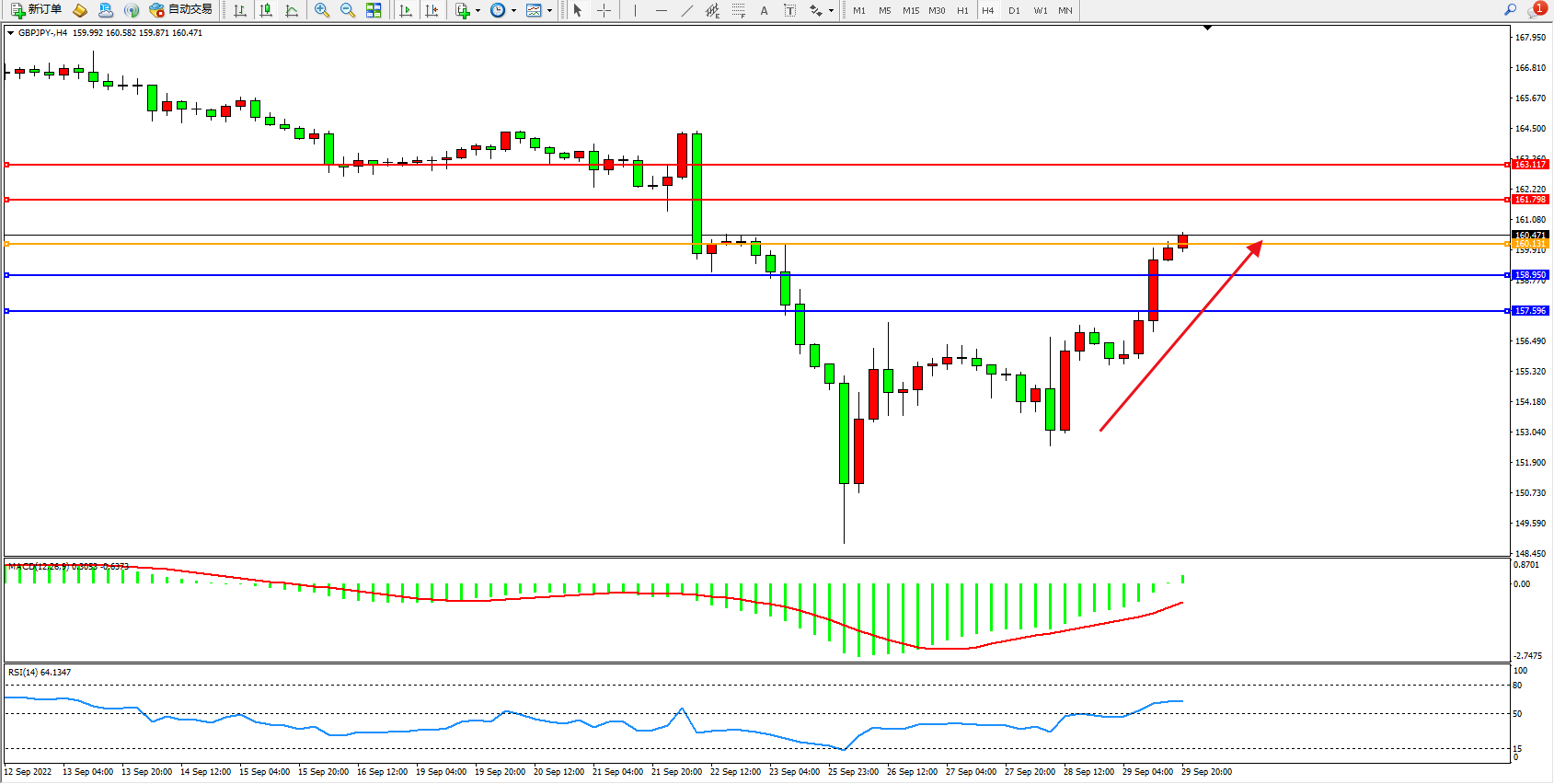 交易策略:160.131上方看涨,目标161.798、163.117