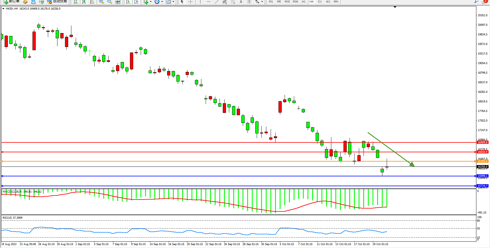 恒指HK50 4小时图