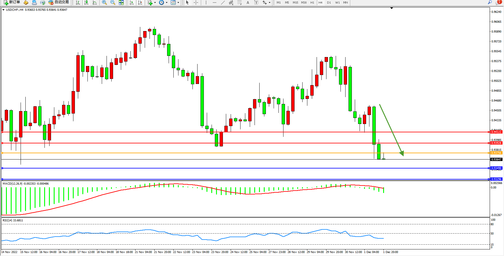 交易策略:0.93756下方看跌,目标0.93490、0.93296