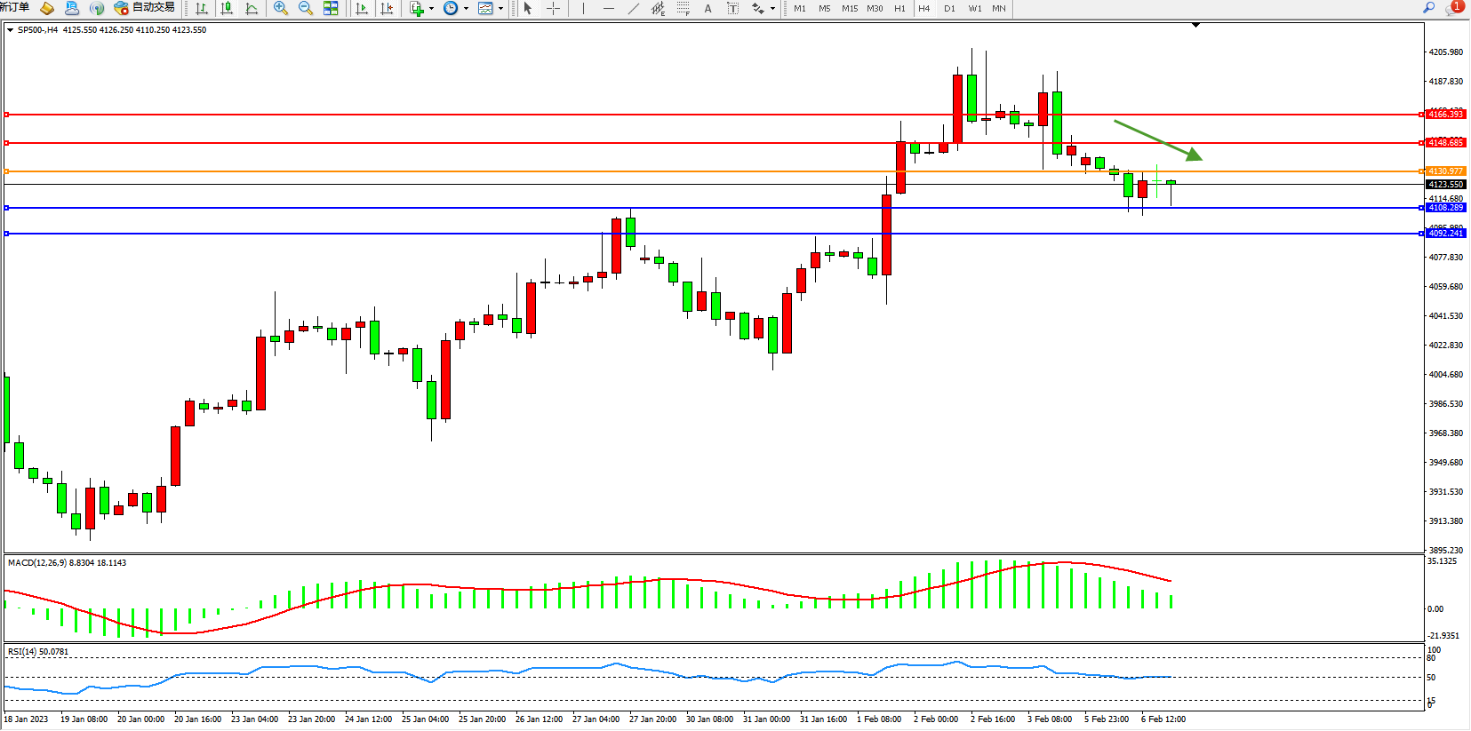标普SP500——4小时K线图显示: