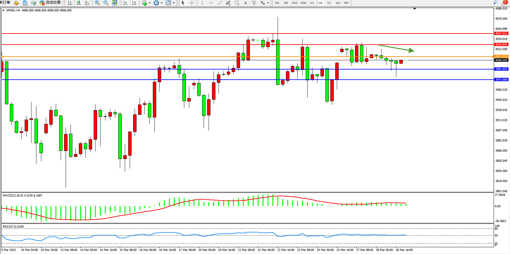 标普SP500——4小时K线图显示: