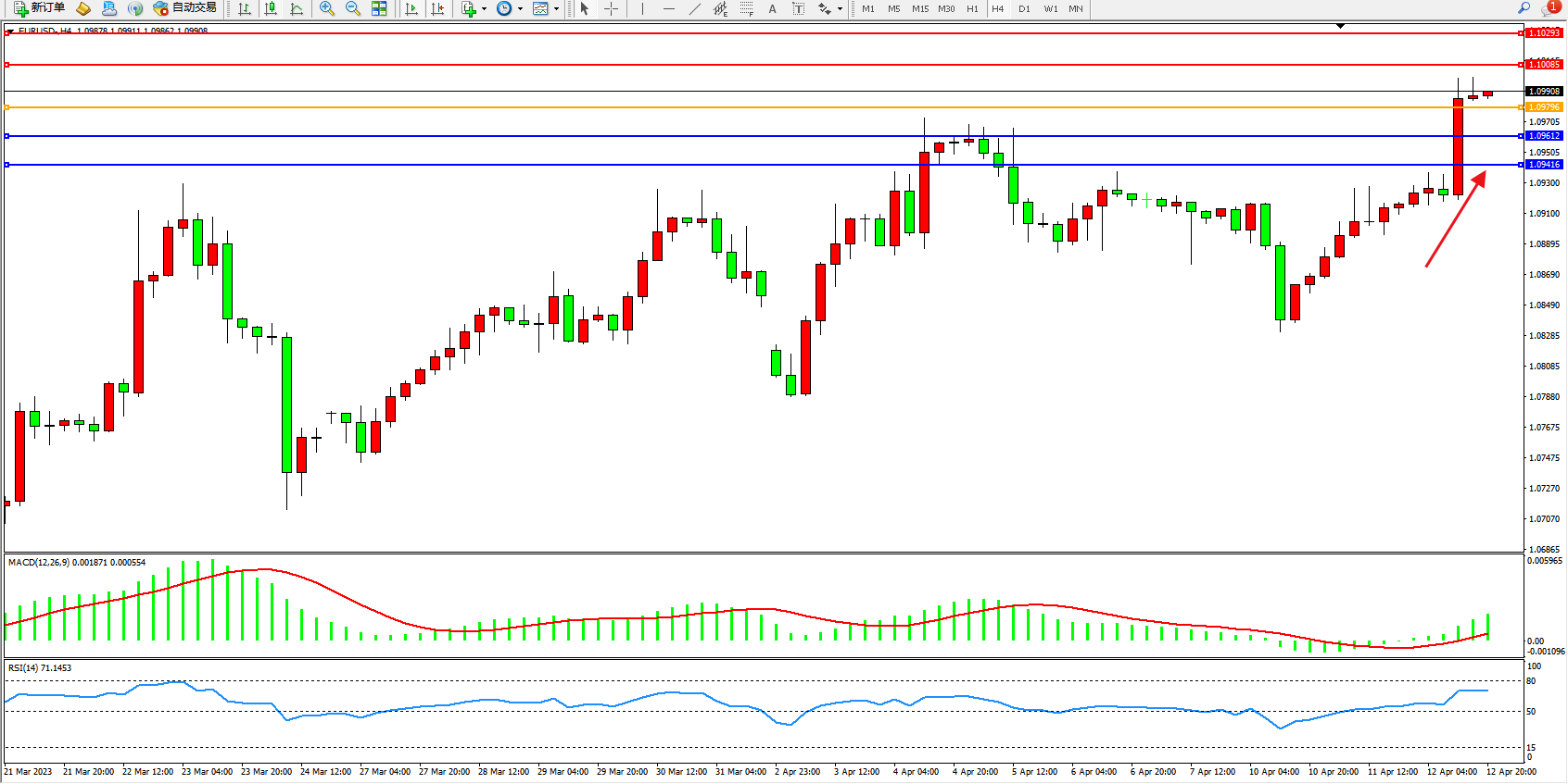 交易策略:1.09796上方看涨,目标1.10085  1.10293