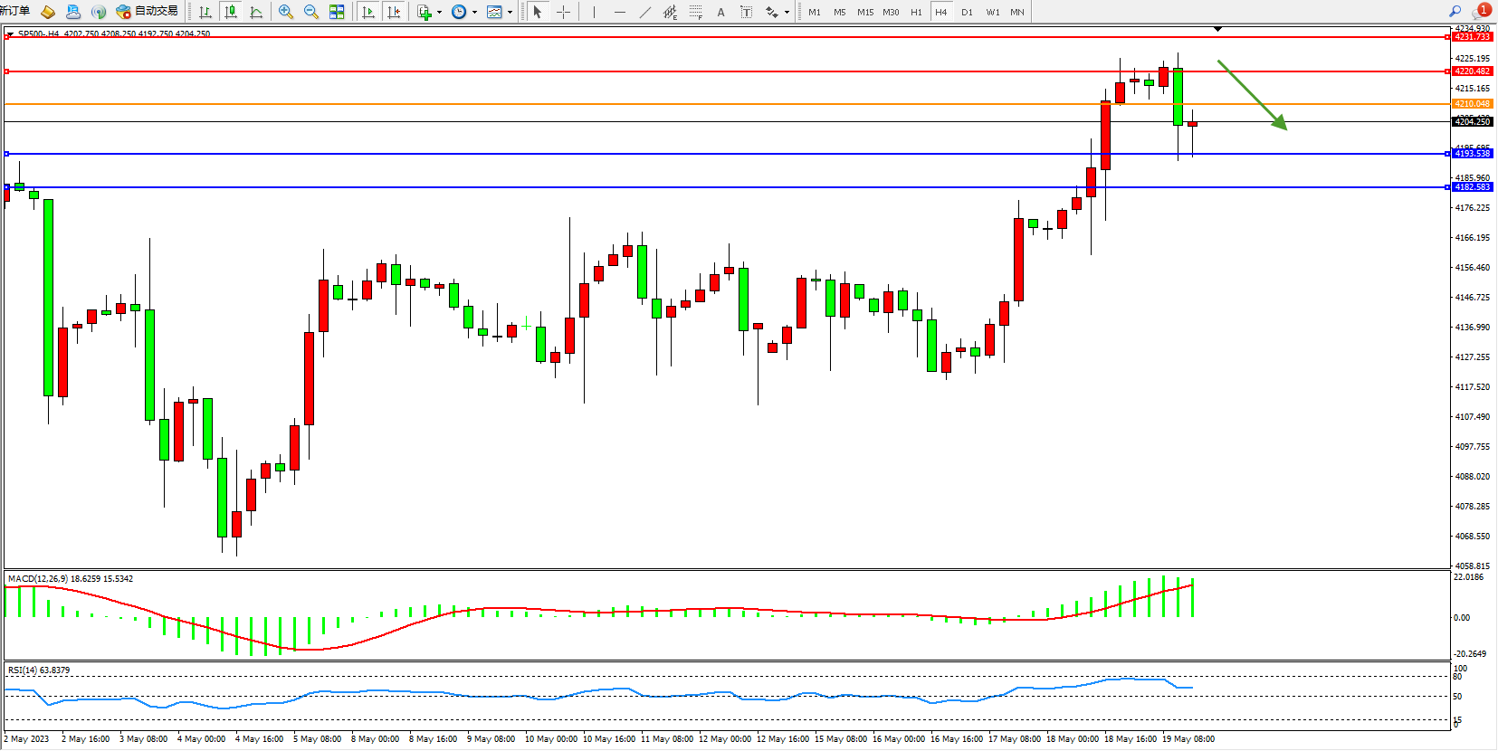 标普SP500——4小时K线图显示: