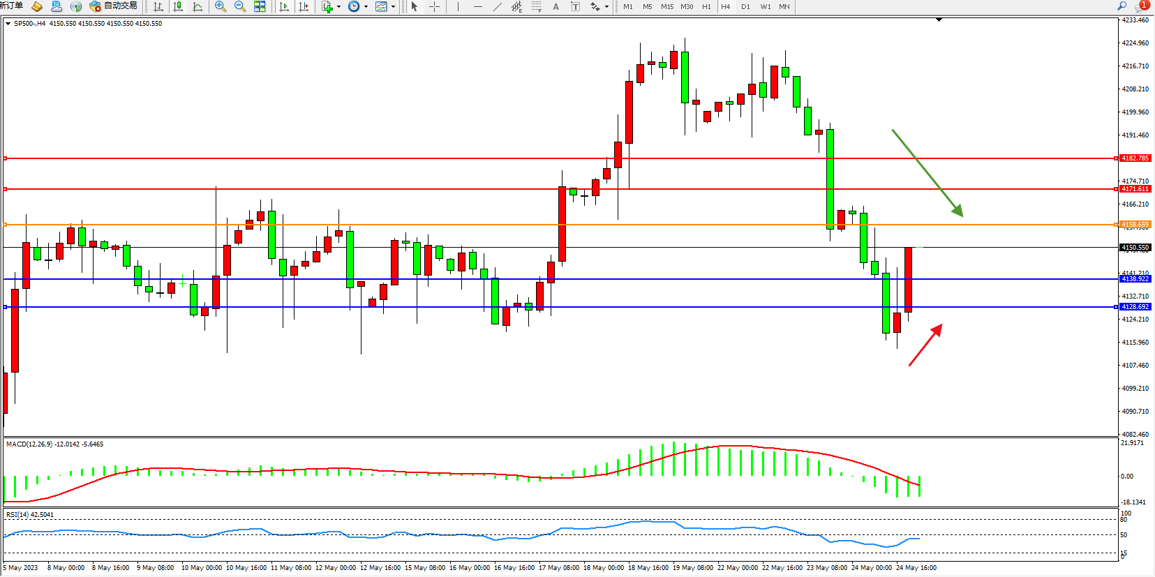 标普SP500——4小时K线图显示: