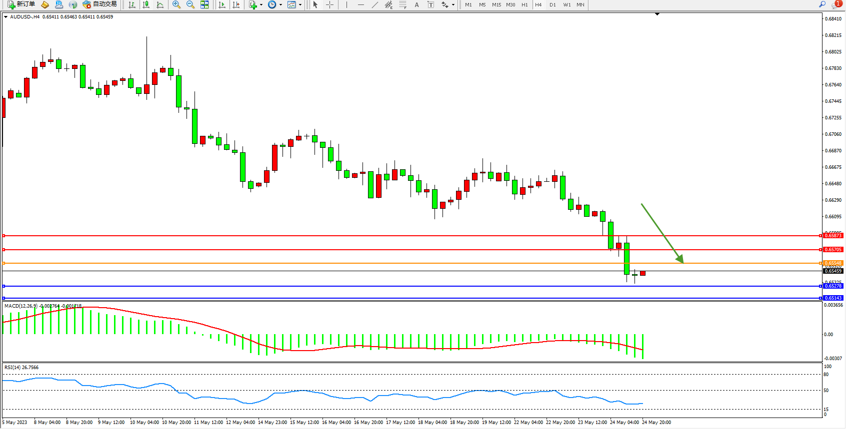 澳元美元AUDUSD——4小时K线图显示:
