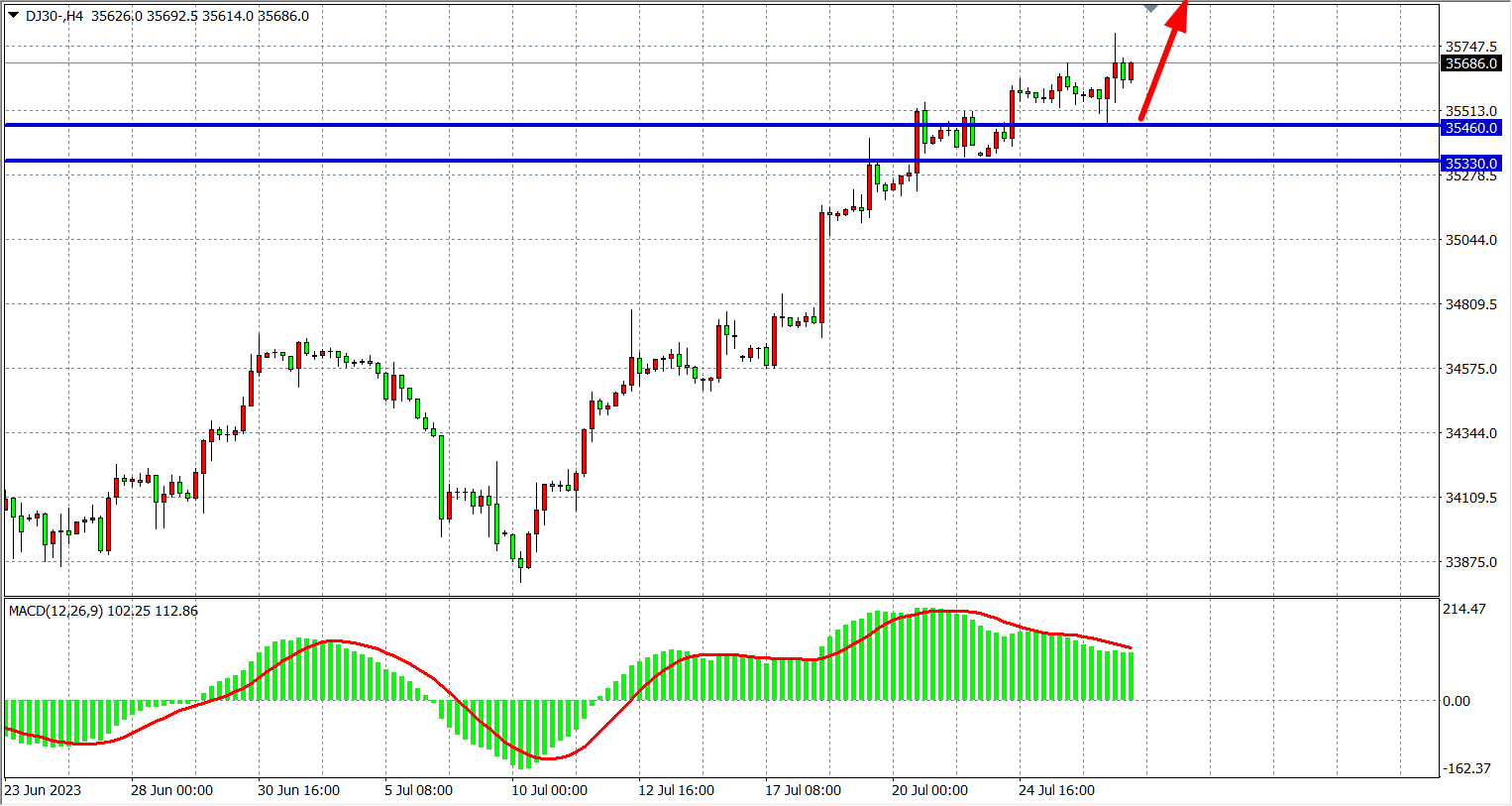 交易策略:35460 上方看涨,目标 35700  36000
