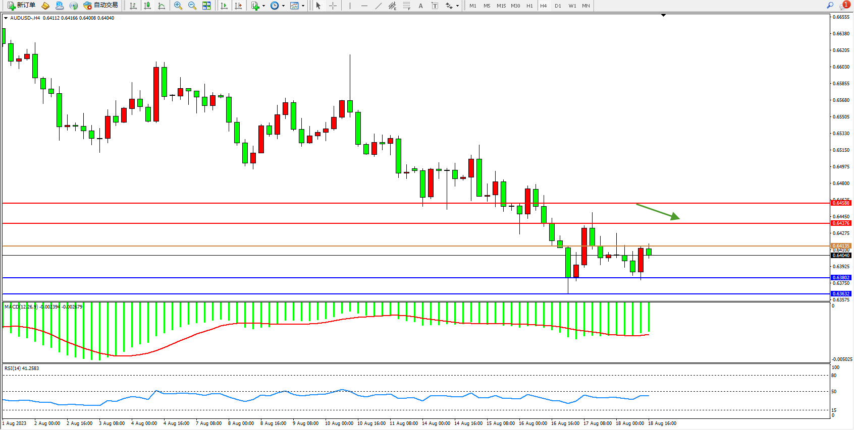 交易策略:0.64135下方看跌,目标0.63802  0.63632