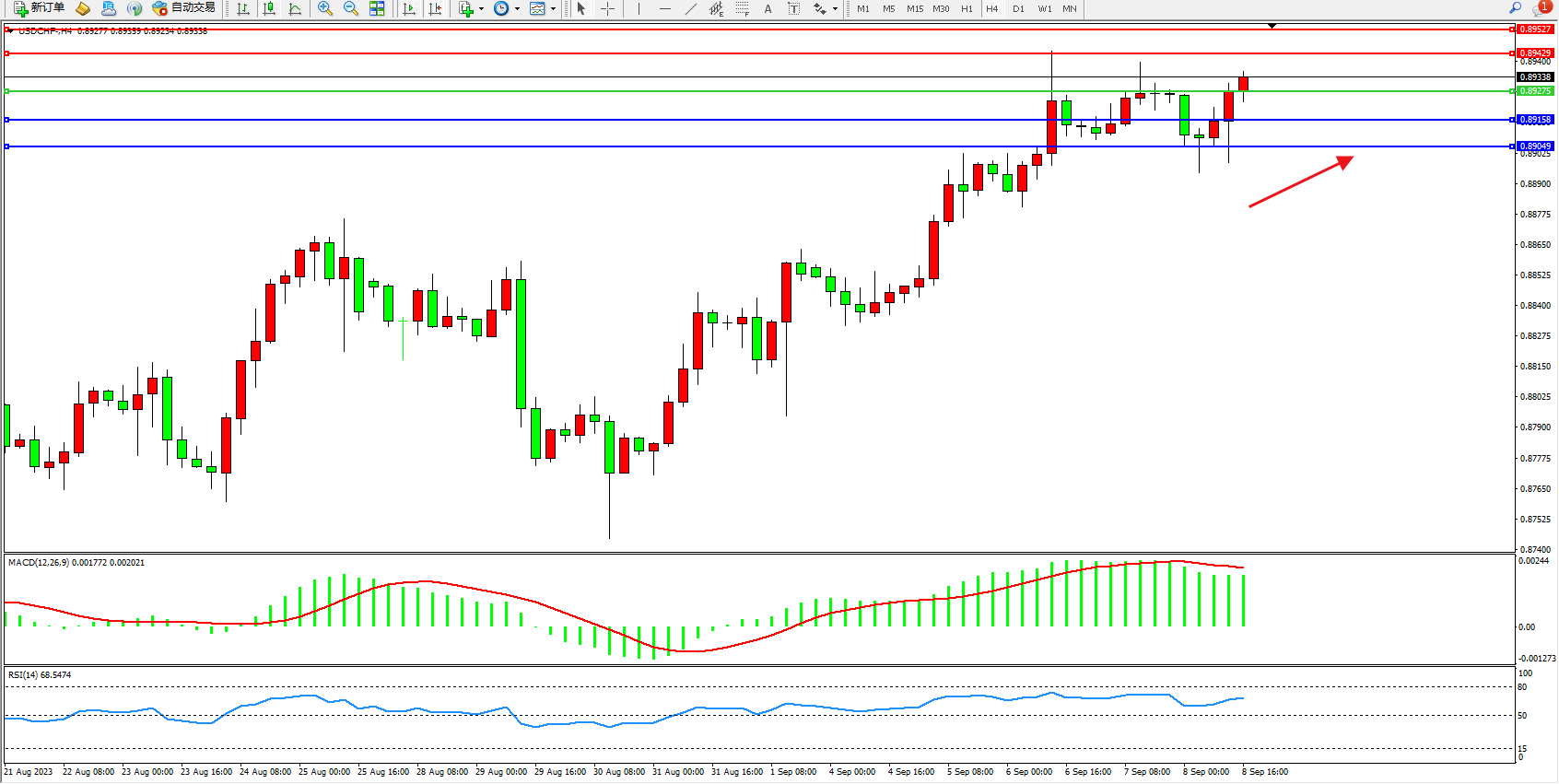 交易策略:0.89275上方看涨,目标0.89429  0.89527