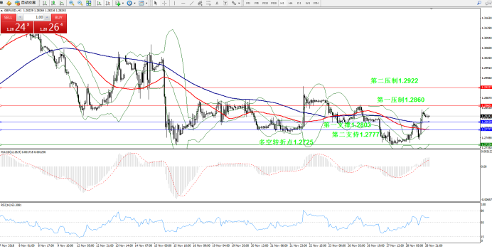 支撑位:第一支撑1.2803;第二支撑1.2777