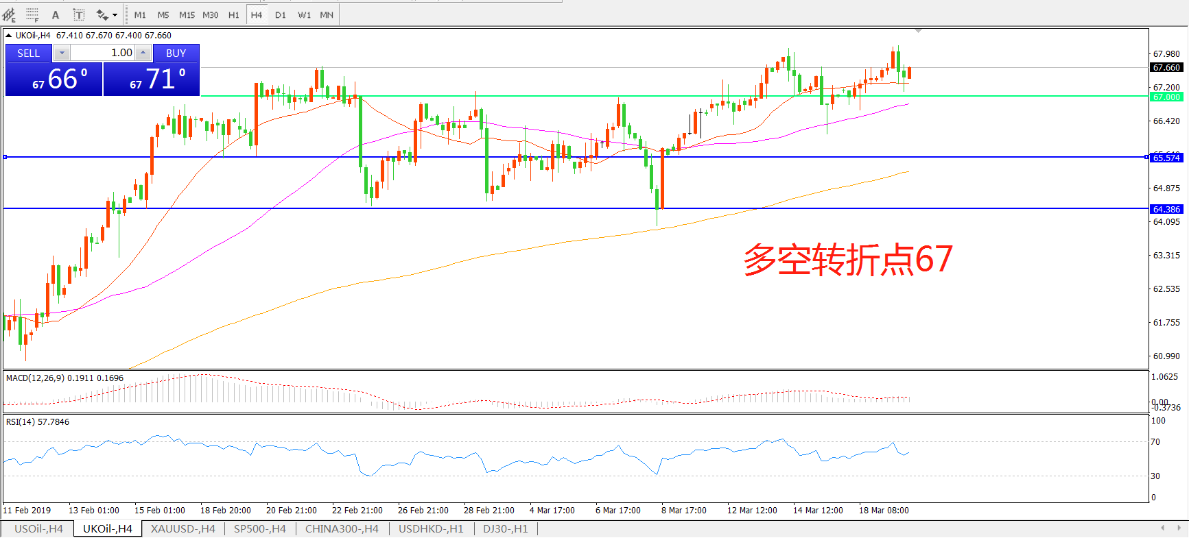 多空转折点:67.00