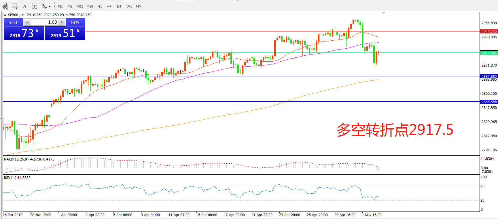 标普500SP5004小时图