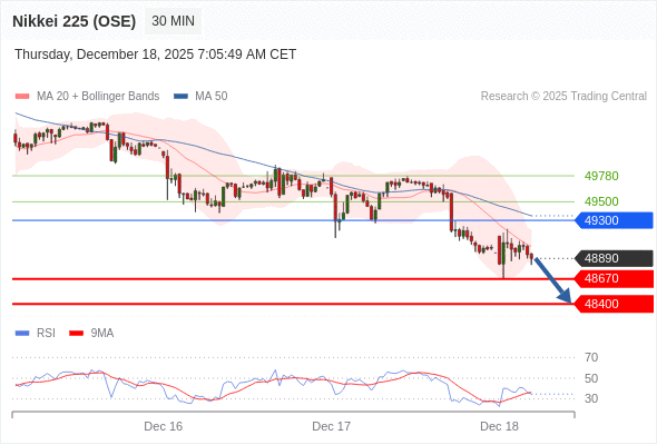 在 49300 之下,看跌,目标价位为 48670 ,然后为 48400 。