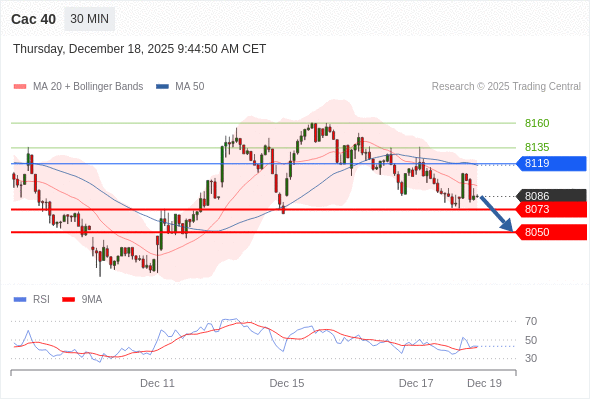 Cac 40 当日内: 存在压力。