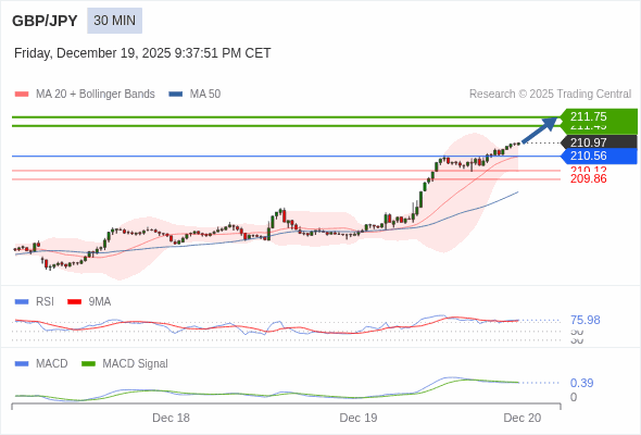 交易策略: 看涨,当 210.56 为支撑位,目标定在211.75。