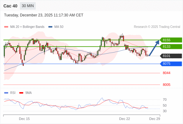 Cac 40 当日内: 超短线(当日内)支撑位在8075附近。