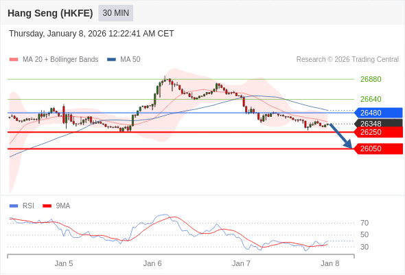 在 26480 之下,看跌,目标价位为 26250 ,然后为 26050 。