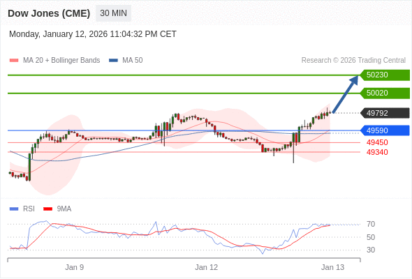 在 49590 之上,看涨,目标价位为 50020 ,然后为 50230 。