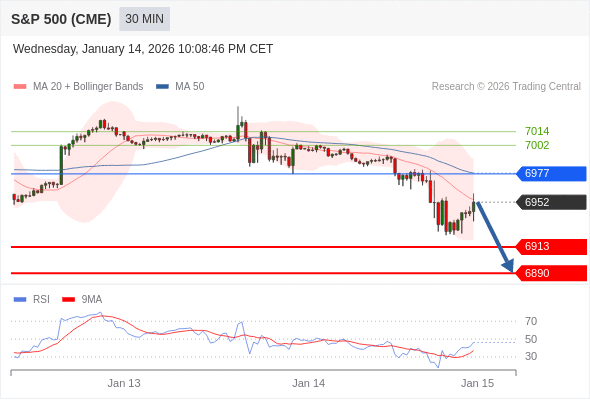 在 6977 之下,看跌,目标价位为 6913 ,然后为 6890 。