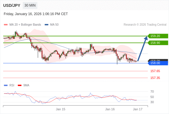 在 158.00 之上,看涨,目标价位为 158.90 ,然后为 159.20 。