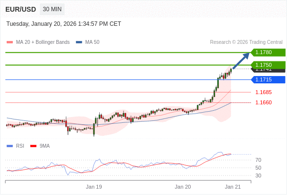 在 1.1715 之上,看涨,目标价位为 1.1750 ,然后为 1.1780 。