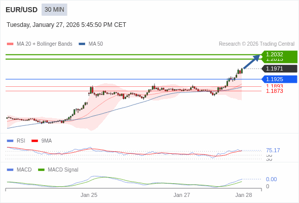 替代方案: 在1.1925以下,期待1.1893和1.1873。