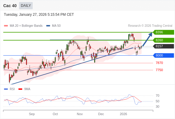 Cac 40 短线: 没有明显变化趋势。
