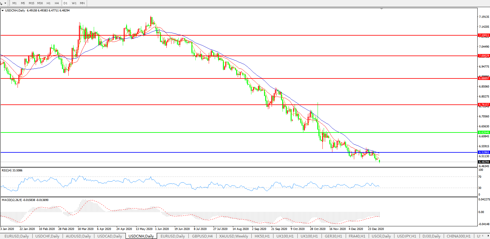 美元兑人民币USDCNH 日线图: