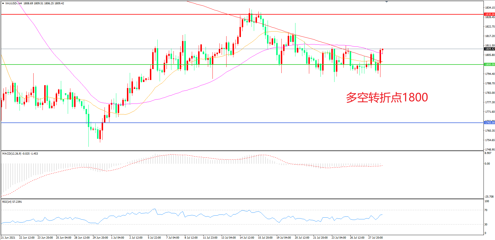 交易策略:  在1800.00之上看涨,目标1830.00        1860.00