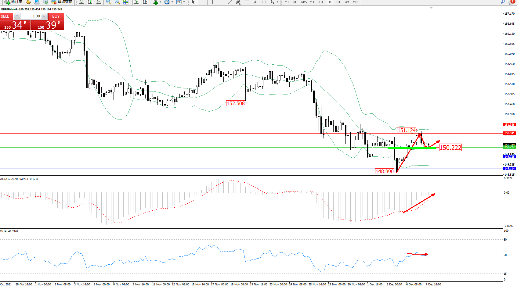 交易策略:150.222上方看涨,目标150.941、151.386