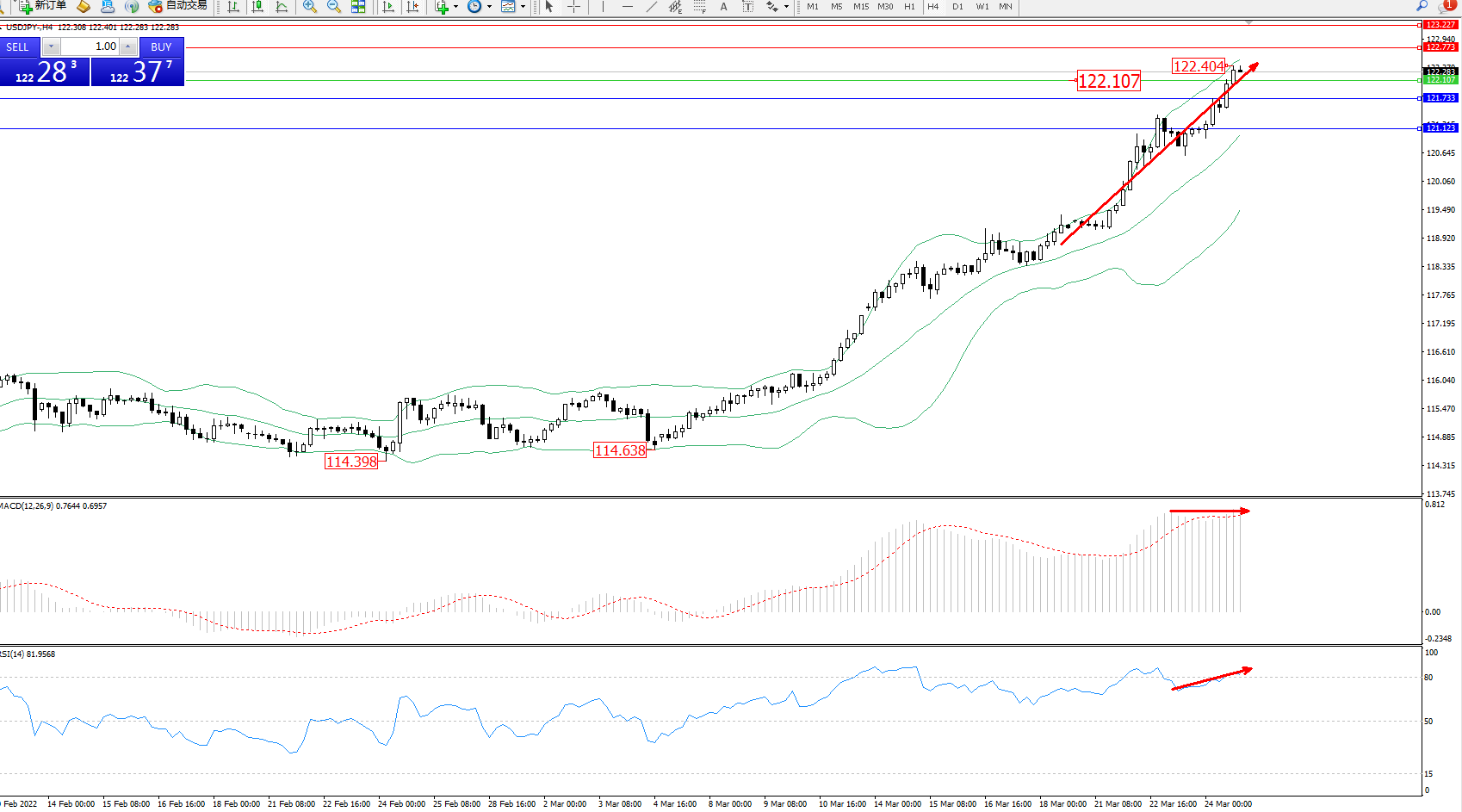 美元兑日圆维持122.283附近震荡,日本央行公布的会议记录显示,在1月会议上,日本央行委员一致认为,如果企业转嫁成本上涨的速度快于预期,消费者通胀可能会超出央行预期。看到那些提高价格的公司的股价也在上涨,价格上涨范围可能会扩大,并提高中长期通胀预期。与俄罗斯相关的贸易中断不仅会拖累俄罗斯经济,还会延长全球供应限制,从而拖累全球经济增长。目前,必须关注日本经济的下行风险......以及物价的上行风险。