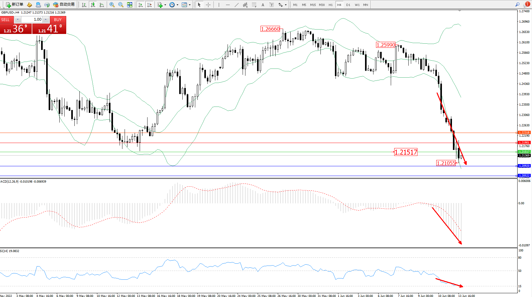 交易策略:1.21517下方看跌,目标1.20920、1.20522