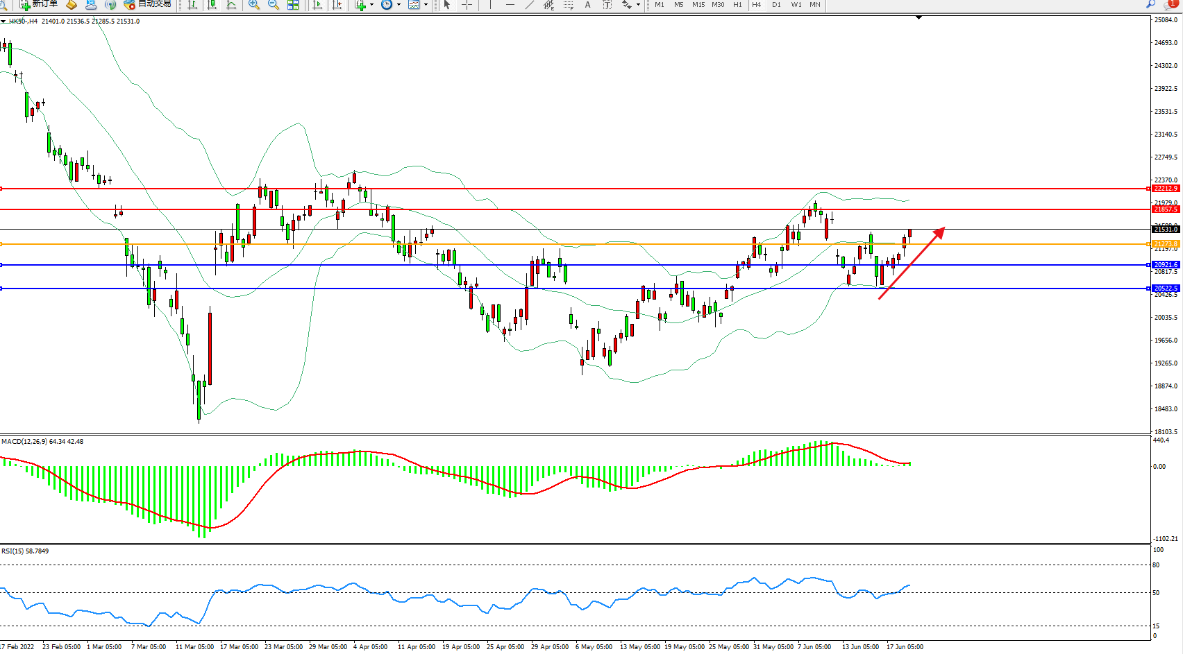 恒指HK50 4小时图