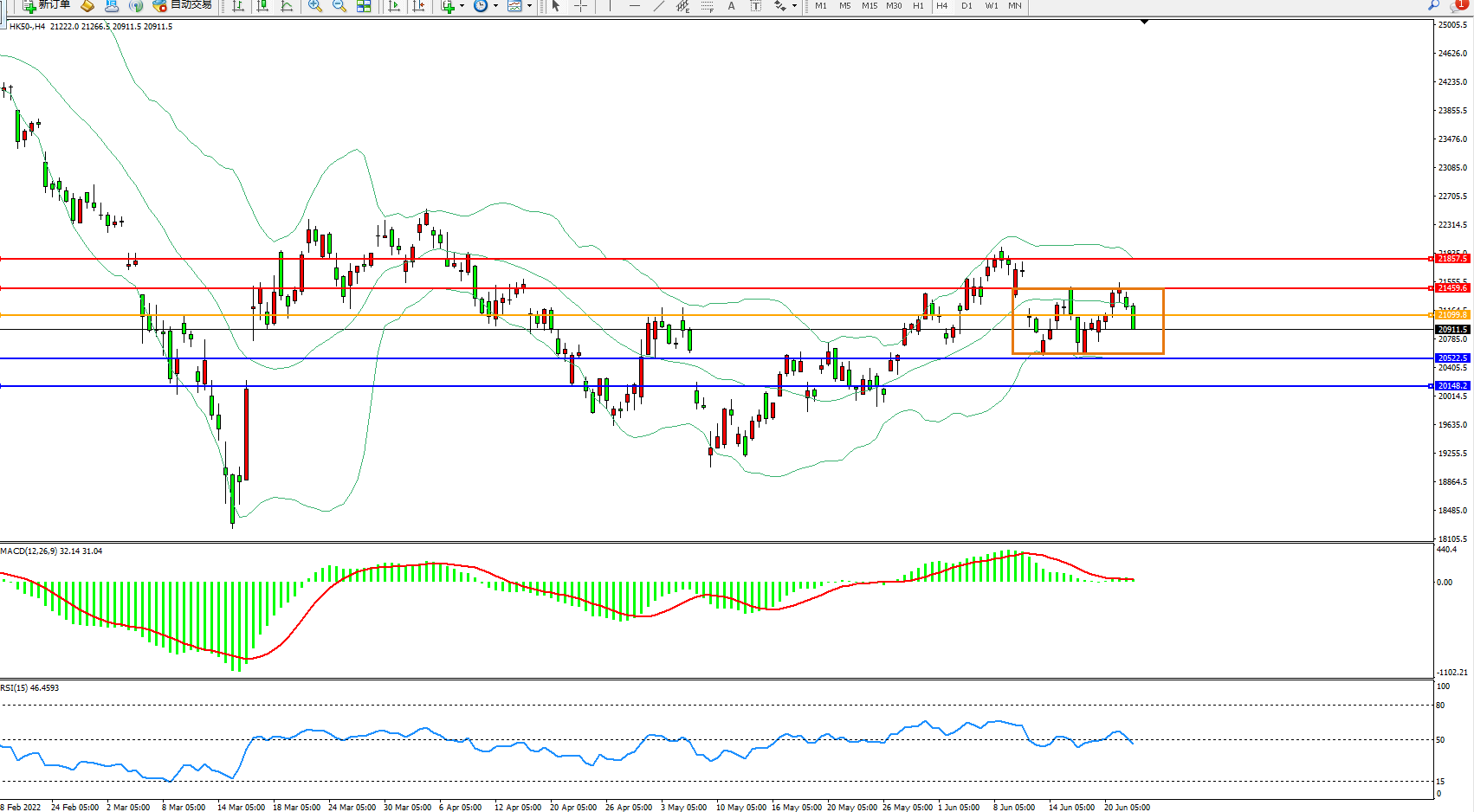 恒指HK50 4小时图