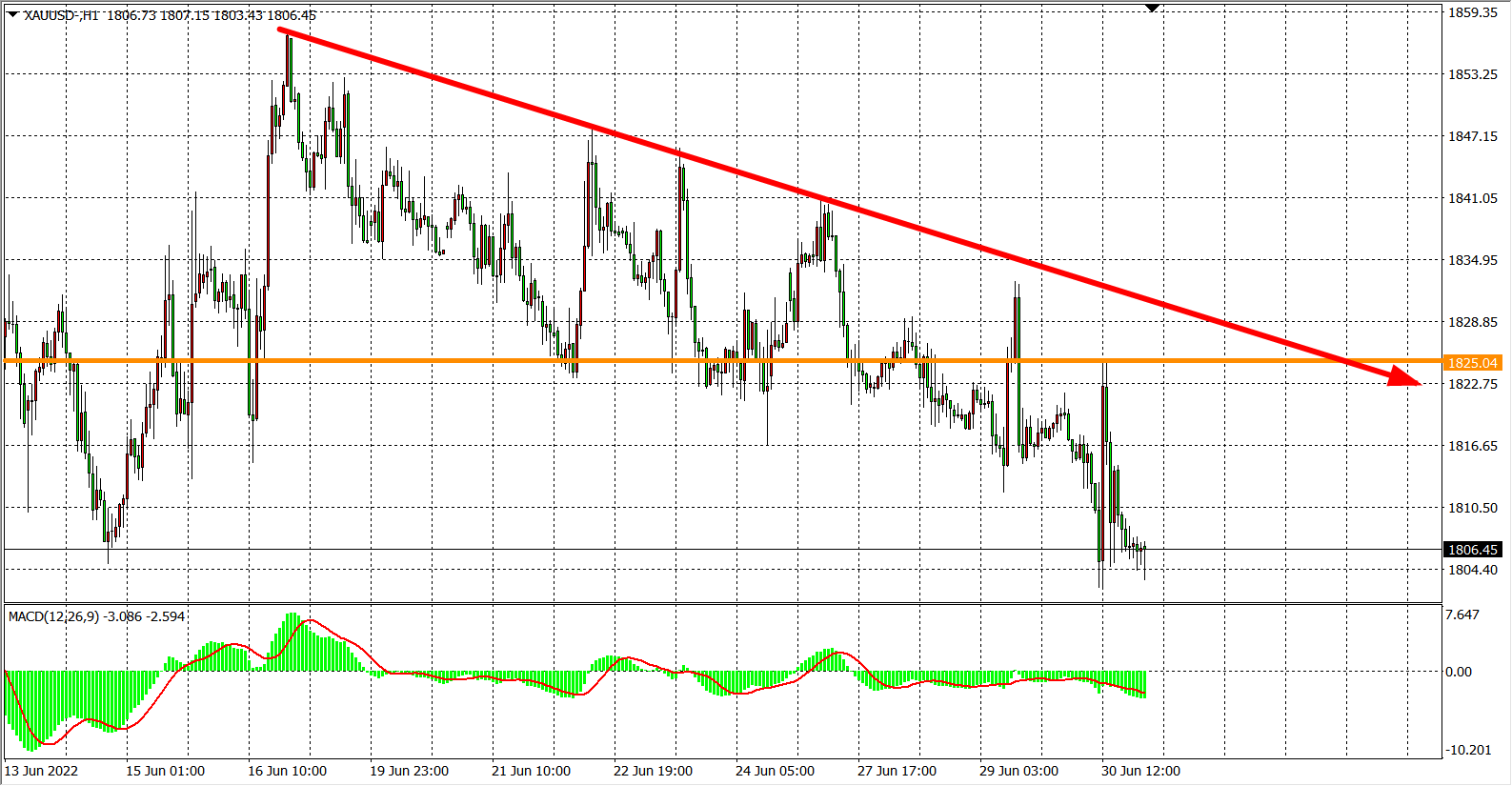 黄金:阻力下移1825