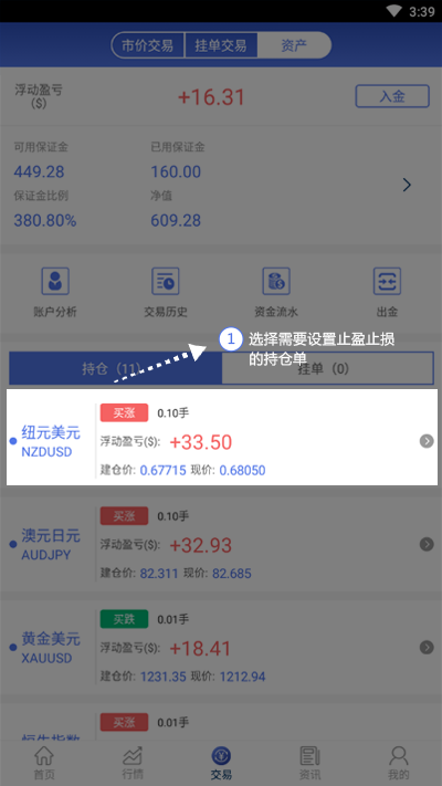 1.进入资产界面,选择需要设置止盈止损的持仓单