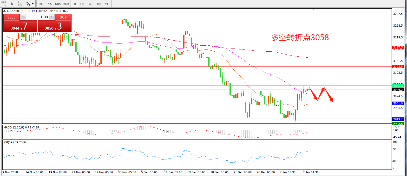 多空转折点:3058.00